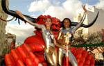 1954 - Segunda Parada de Rainhas, Cortejo do rei do Carnaval, enriquecido com Cavaleiros e Reis Mouros montados em camelos. Na
