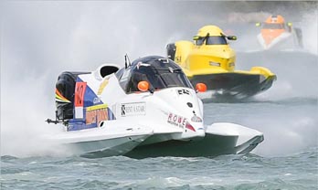 Os barcos usados nesta competição são equipados com motores que chegam aos dois mil cavalos, atingindo velocidades que