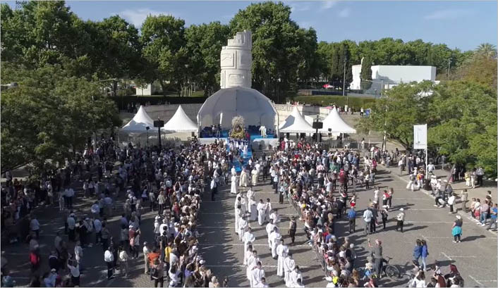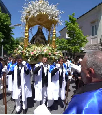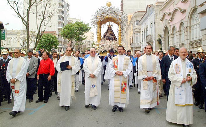 segue atrás do andor, tocando a Marcha Triunfal à Mãe Soberana,